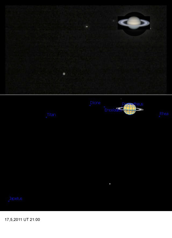 Am 17.5.2011 konnten die Saturn-Monde sehr gut beobachtet werden. Um 21 Uhr wurden einige Aufnahmen mit der Mintron-Kamera gemacht.