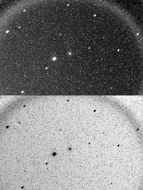 Der Koment Christensen wurde in regelmäßigen Abständen beobachtet. Dabei konnte sehr gut seine Bewegung (von links unten nach rechts oben im Bild) vorm Fixsternhimmel herausgearbeitet werden.BilderfolgeDatum: 18.08.2009, UT 21:30Objekt: Komet C/2006 W3 ChristensenInstrument: Newton D=300/F=1600 mm.Kamera: CCD SBIG ST 7.Belichtung: 5 X 2 Minuten.... [mehr]