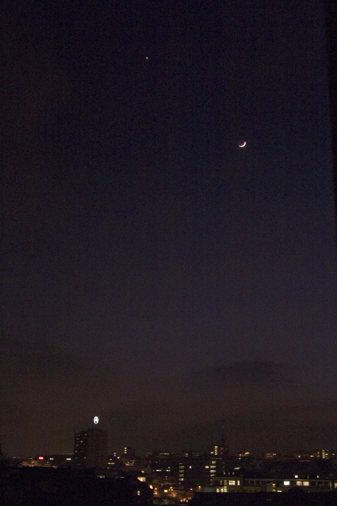 Zum Jahresende verabschiedeten sich Mond und Venus gegen 18 Uhr über der Skyline von Kassel [mehr]